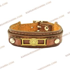 دستبند چرم طرح پلاک ورساچه طلایی